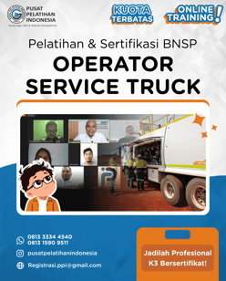 Mematuhi prosedur K3 dalam pengoperasian service truck, termasuk penggunaan APD, pemisahan area servis, dan kepatuhan pada izin kerja